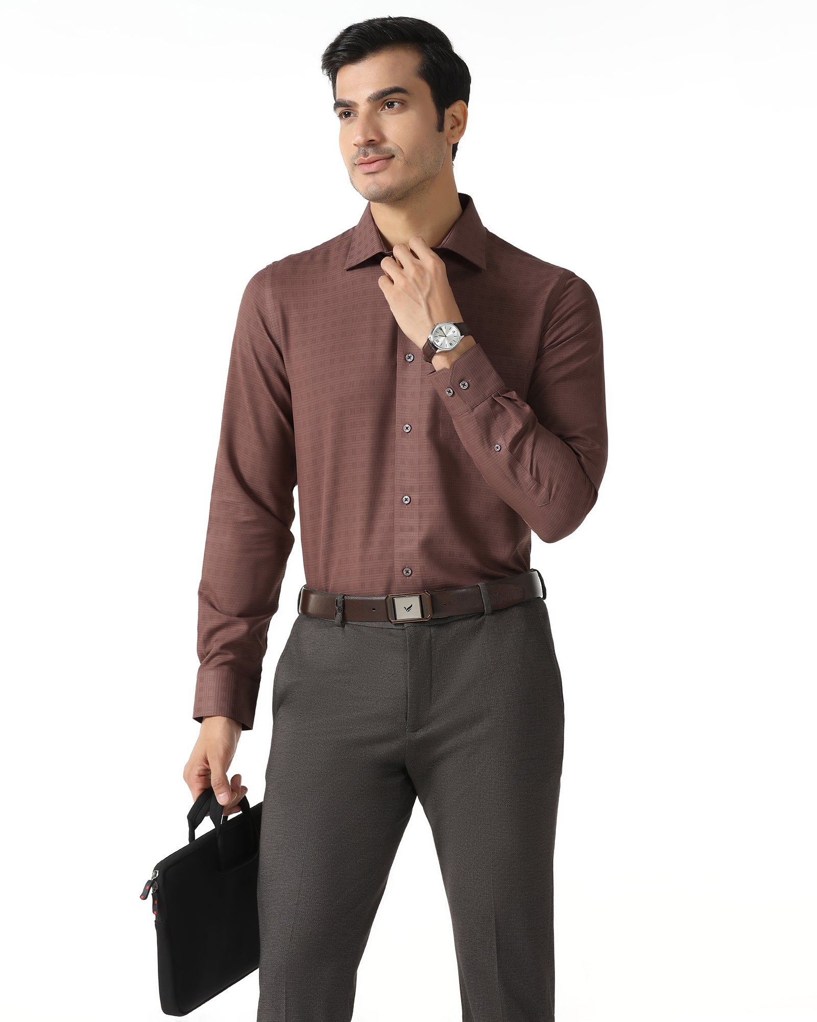 Embrace polished living with a Formal Shirt made from premium dobby woven fabric with advanced Japanese tech yarn that has an India fit for modern professionalism. Featuring a high stance collar, an extended placket and clean taped seams, it is the ideal choice for the most active man on the go, with a DP rating of 3.5 to 4 for its expected wrinkle resistance and structure throughout the day. It is easy to iron for lasting polish and comfort.