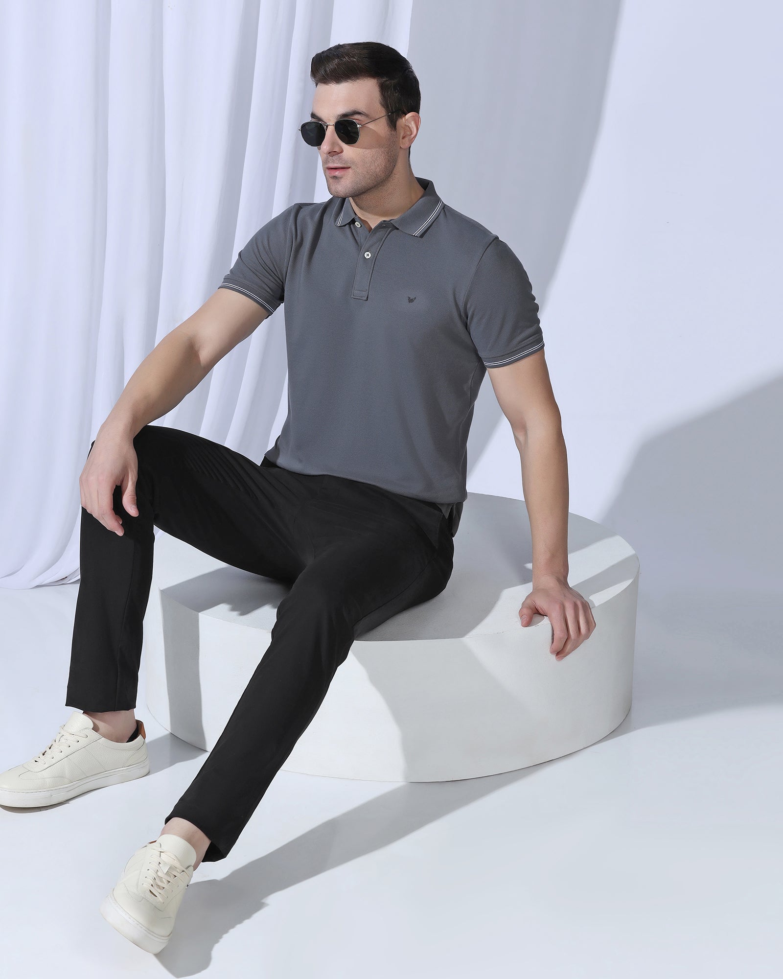 Slim Fit B-91 Casual Black Textured Khakis - Kary