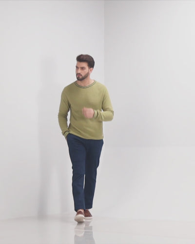Elevate your style game with this Moss Green Crew Neck Sweater, where contemporary fashion meets unwavering comfort. Crafted with meticulous attention to detail, this sweater effortlessly combines a solid pattern with a slim fit, creating a silhouette that's as sleek as it is comfortable. The long sleeves offer an extra layer of warmth, making it a perfect choice for those transitional seasons.