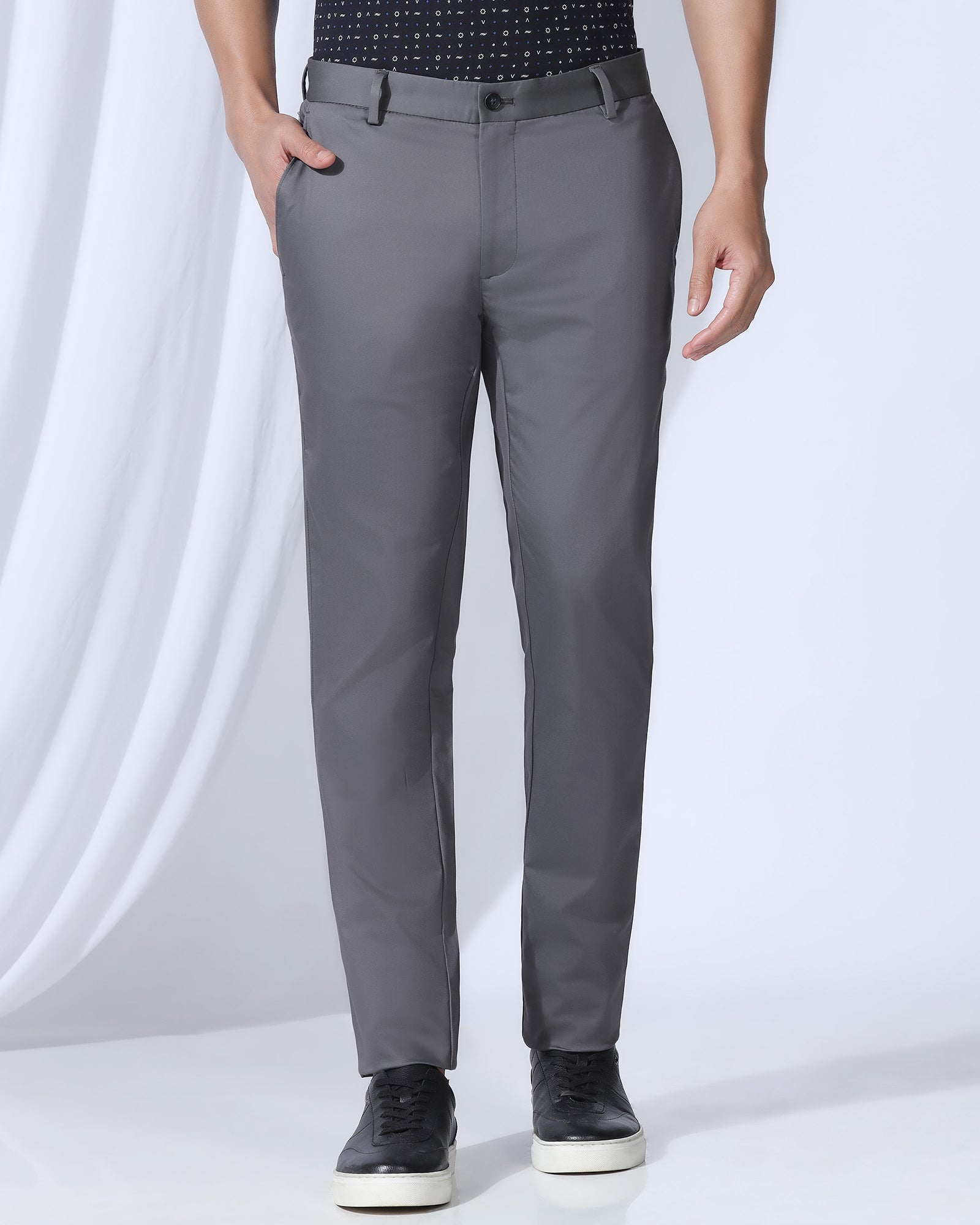 Temp Tech Slim Fit B-91 Casual Grey Solid Khakis - Peter