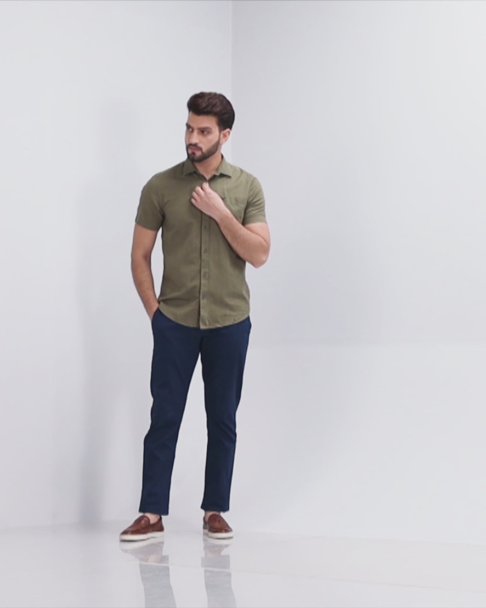 •Pair it with Teal printed polo along with brown sneakers to give another smart casual look, the Khakis certainly amps up the outfit of the day #OOTD essentials.