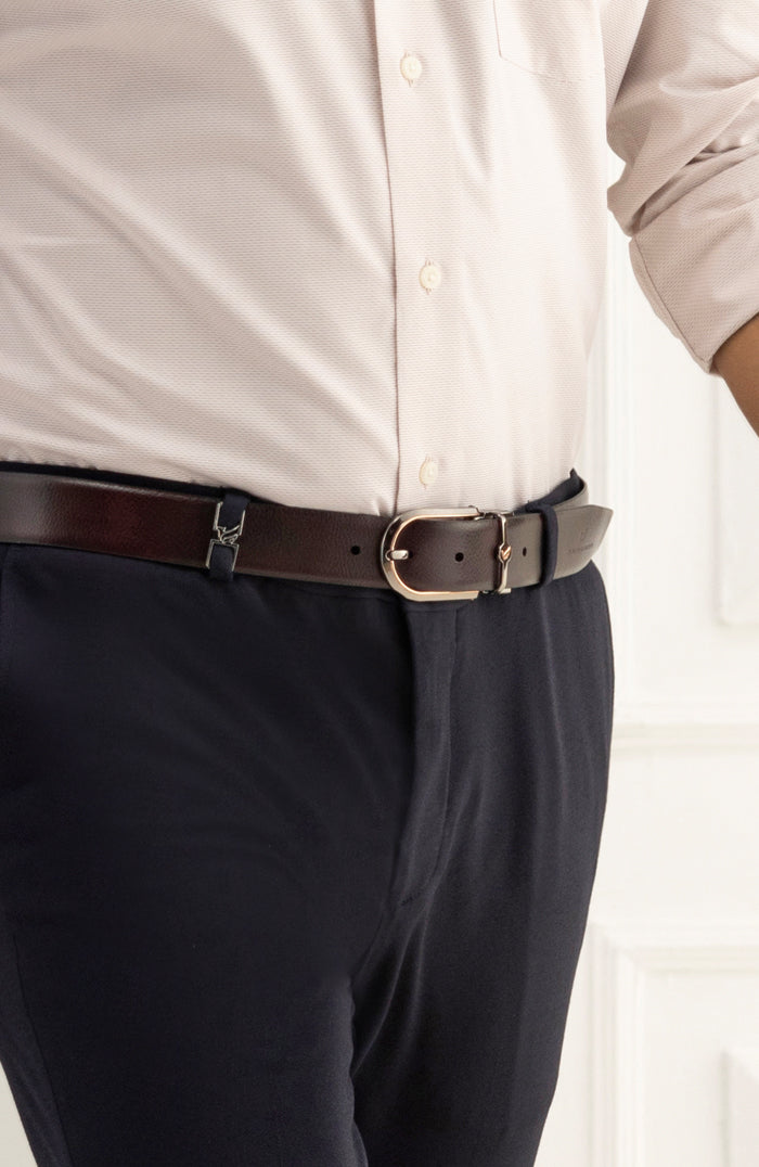 Add a chic touch of sophistication by wearing the Black Tan Textured Reversible Belt. This belt boasts a unique reversible design, providing two stylish options. Whether you opt for the textured pattern or the sleek leather weave, each side exudes elegance, making it a must-have accessory for any fashion-conscious individual. The buckle-up closure ensures a secure and comfortable fit, making this belt fashionable and practical.