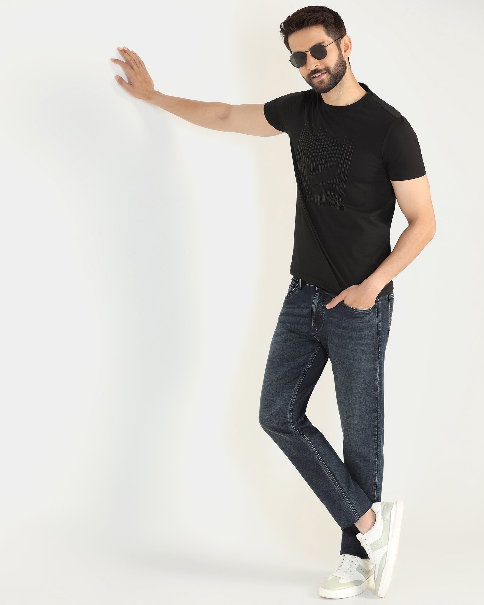 Elevate your style with the Mid Rise Ultrasoft Jeans, combining knit fabric ease with denim strength. Crafted for ultimate comfort, these slim fit jeans for men have a mid-rise waist for a classy fit. The stretchy fabric provides smooth movement, and the five-pocket style introduces creativity.