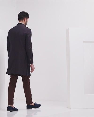 Give your look a stunning uplift by wearing this Brown Two-Piece Printed Achkan Set. Crafted from luxurious wool, this set boasts a rich brown hue that exudes sophistication. The bandhgala collar adds a touch of regal charm, while the slim comfort fit ensures impeccable style without compromising on ease. Meticulously woven fabric enhances the allure, making this set a distinguished choice for any formal occasion.