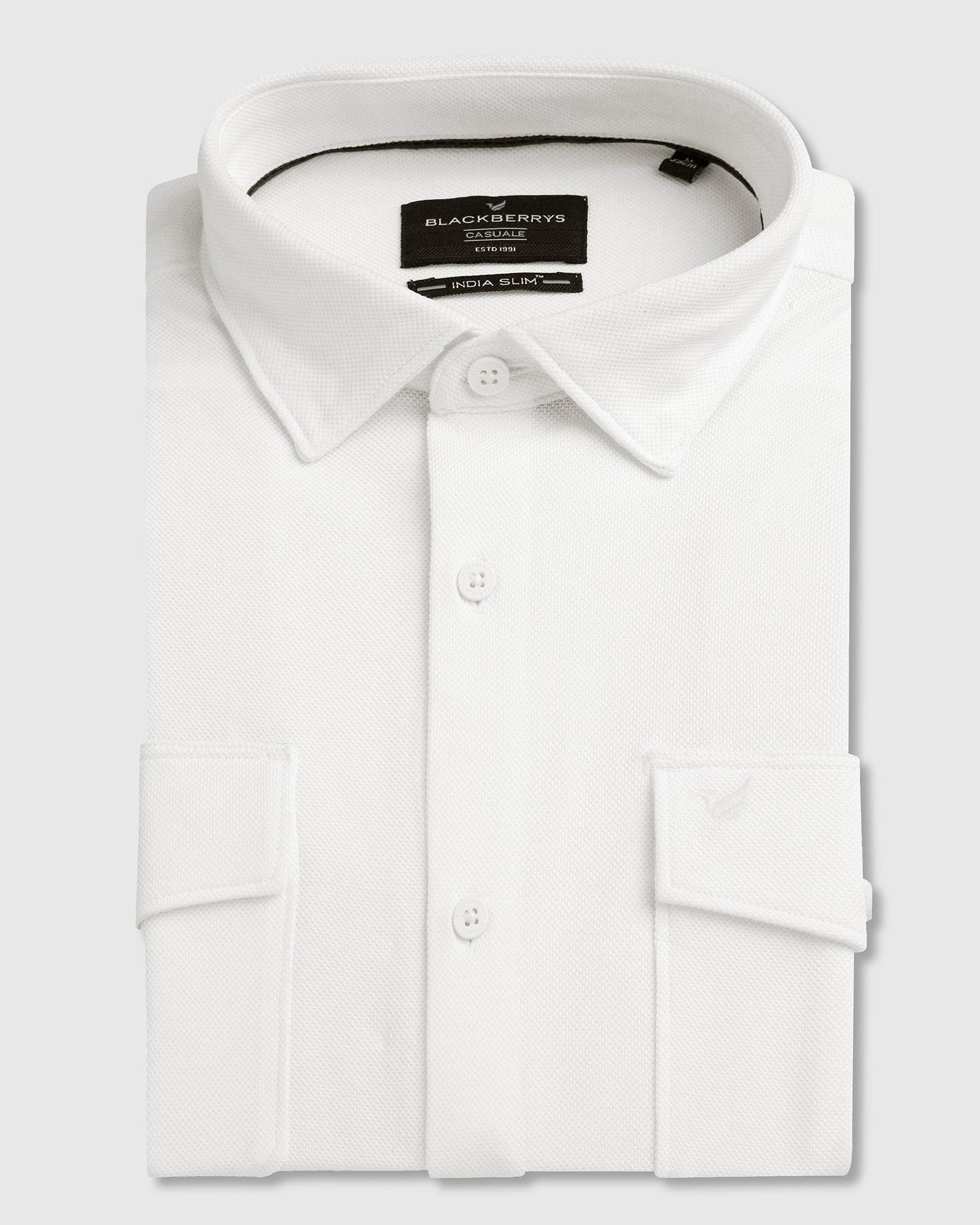 Ease into the day with the Casual Shirt. Made from stretch knit fabric in India fit, this custom shirt moves with you, while double pockets are a handy touch. It features a high-stance collar for a sharp appearance, an extended placket for a smooth finish, and a clean chest that keeps things classy.