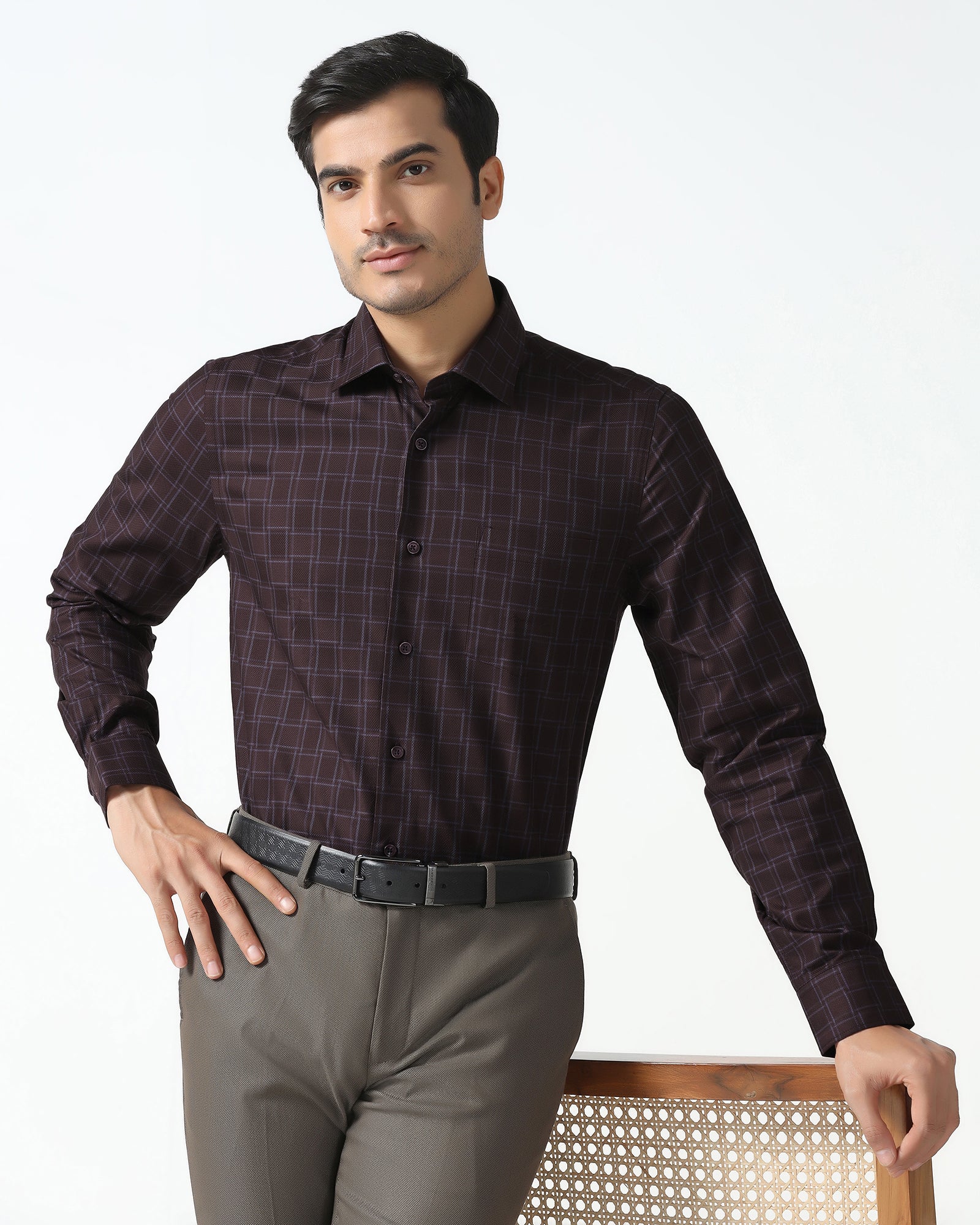 From thread to end this Formal Shirt is your ideal combination of day to night versatility and understated sophisticated charm. An exquisite shirt made from luxurious Giza yarn with a subtle sheen, detailed with a check pattern, which lends itself to classiness. This formal shirt is designed in an India fit with a tailored shape, high stance collar and extended placket to highlight the body's natural silhouette. With a practical chest pocket, it is perfect for everything from formal boardroom meetings to dinners.