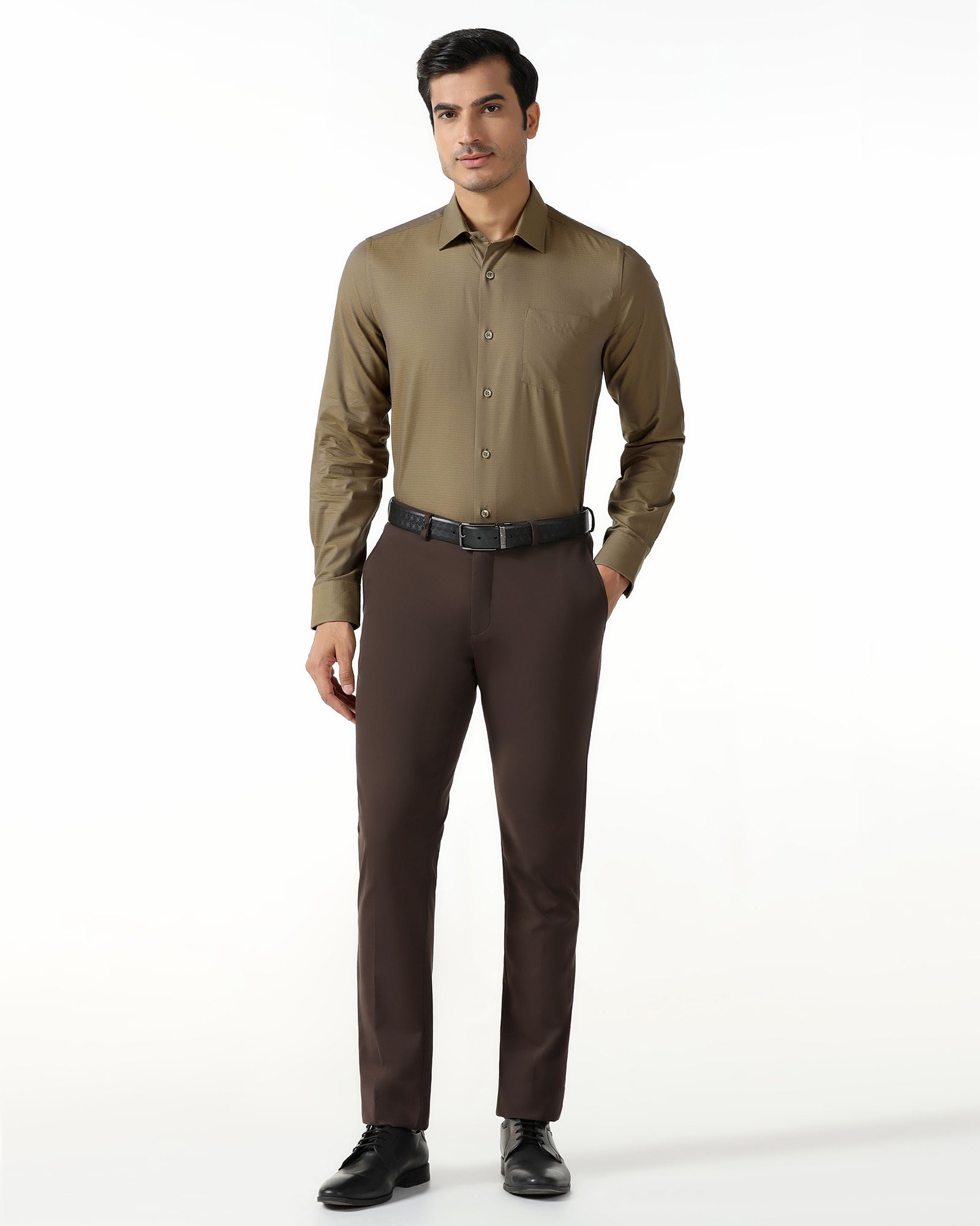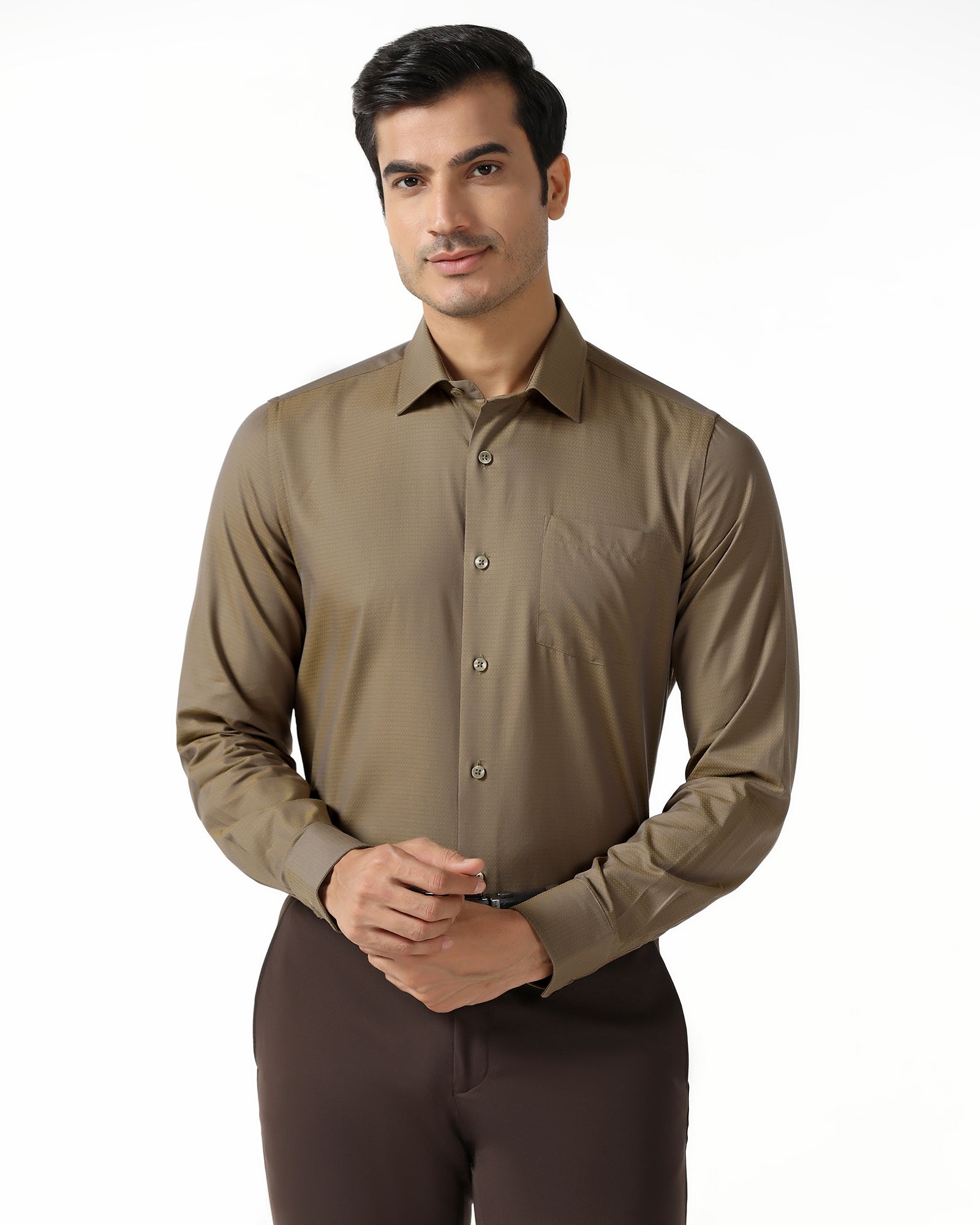 Revisit the classy charm with this impeccably tailored Formal Shirt. This dobby woven fabric, tailored to India fit with a high stance collar, extended placket, and clean chest design, exudes both modernity and grace - the wardrobe essential you style perfectly for all occasions.